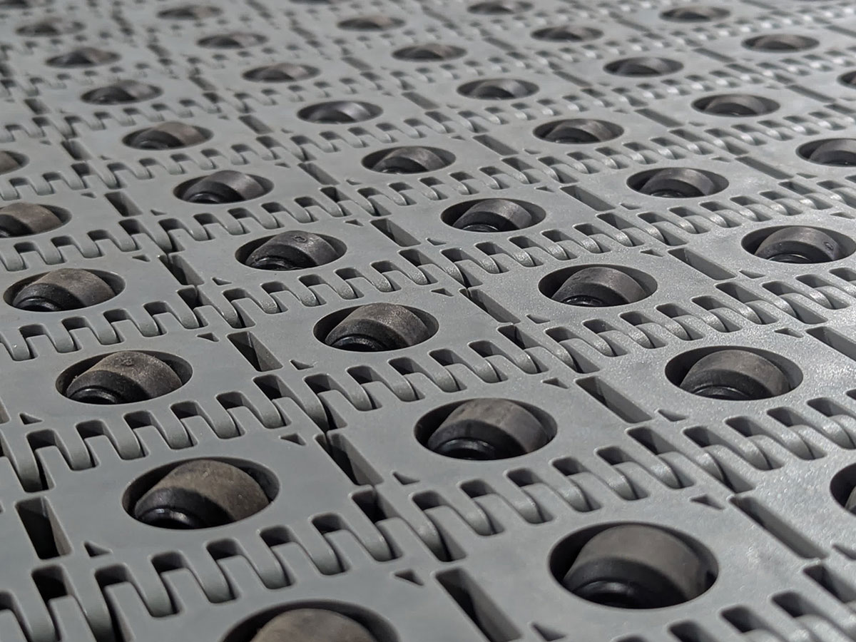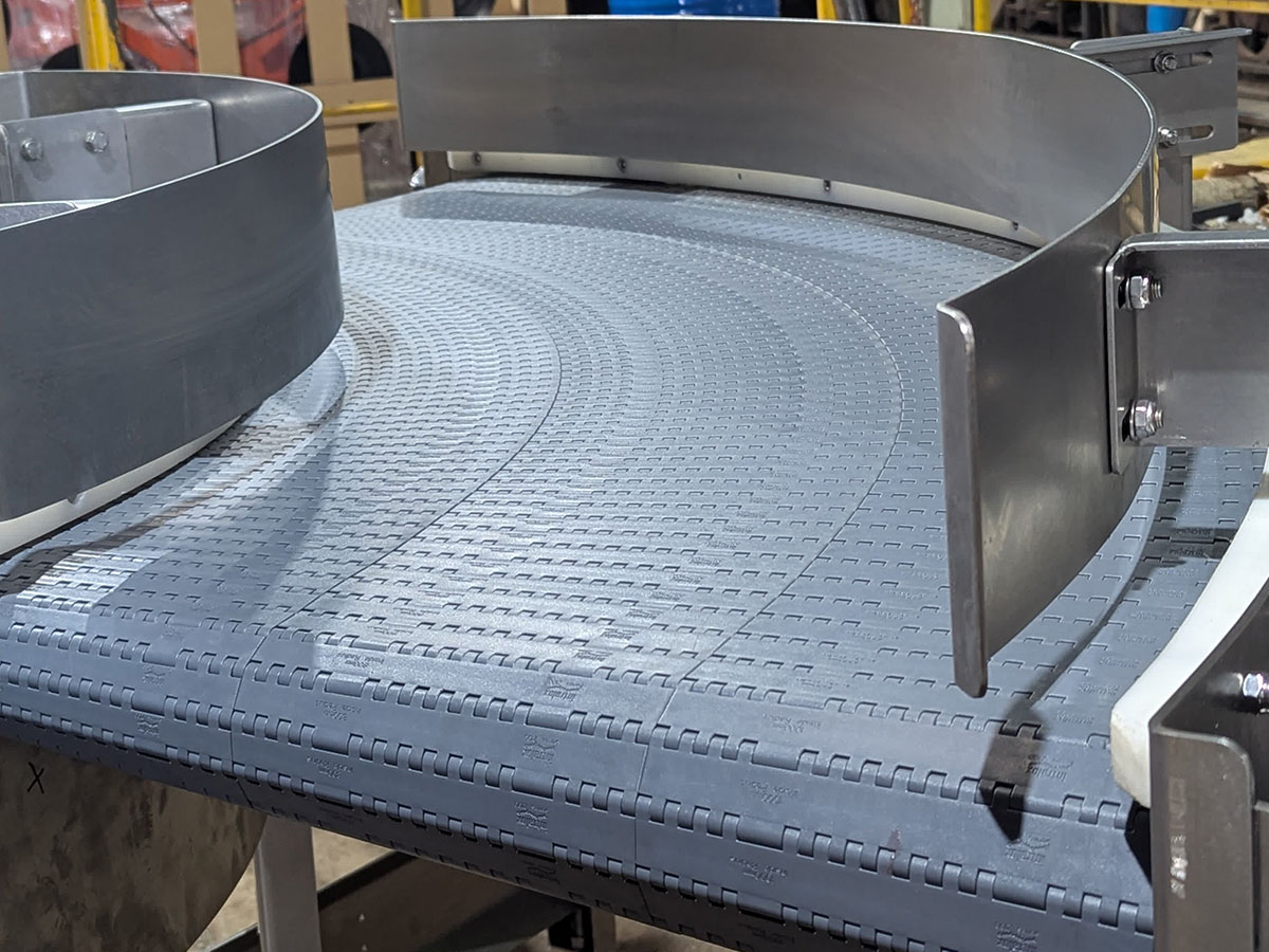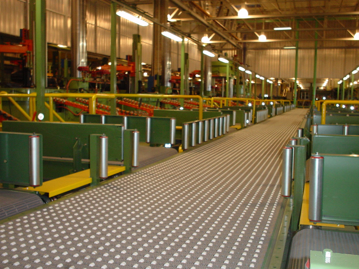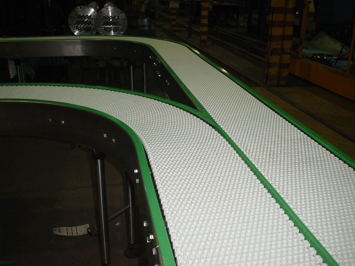 Los transportadores a banda modular ofrecen ventajas significativas en comparación con las bandas de PVC o metálicas. Son fáciles de limpiar, duraderos, no se deforman y se instalan rápidamente. Pueden adaptarse a diversas funciones, como acumulación, alineación y arrastre. Estos transportadores utilizan coronas motrices para traccionar la banda modular, que se desplaza sobre una cama de perfiles plásticos con guías laterales de baja fricción. Las estructuras de los equipos se fabrican en acero al carbono, acero galvanizado o acero inoxidable, y pueden tener una terminación sanitaria. Hay una variedad de bandas modulares disponibles, como bandas lisas, bandas con rodillos para acumulación, bandas con rodillos orientadores y bandas con empujadores. Los transportadores a banda modular se utilizan ampliamente en la industria alimenticia, frigorífica, automotriz, neumáticos y en sistemas de paletizado automático, clasificación y despaletizado.